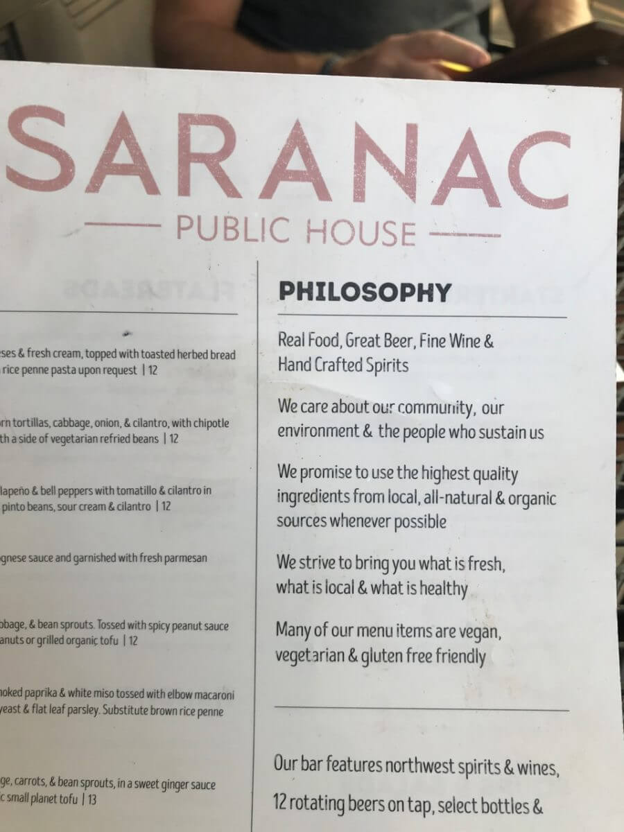 Our first night included a stop at downtown hotspot Saranac. I just love this philosophy at restaurants, don’t you?
