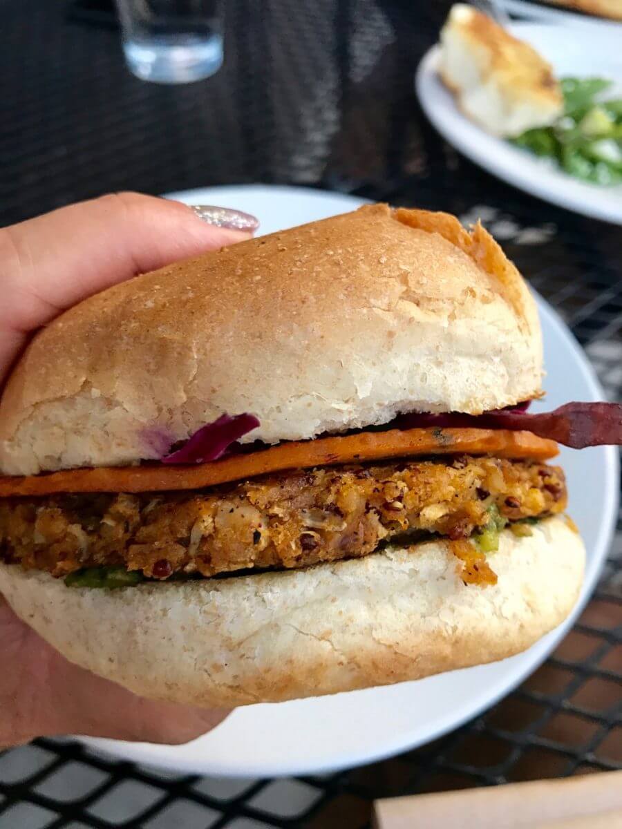 I had the most amazing hand-made veggie burger with chickpeas, smoked vegan cheese, and a cabbage slaw. I saved half in my room to eat for breakfast the next day.