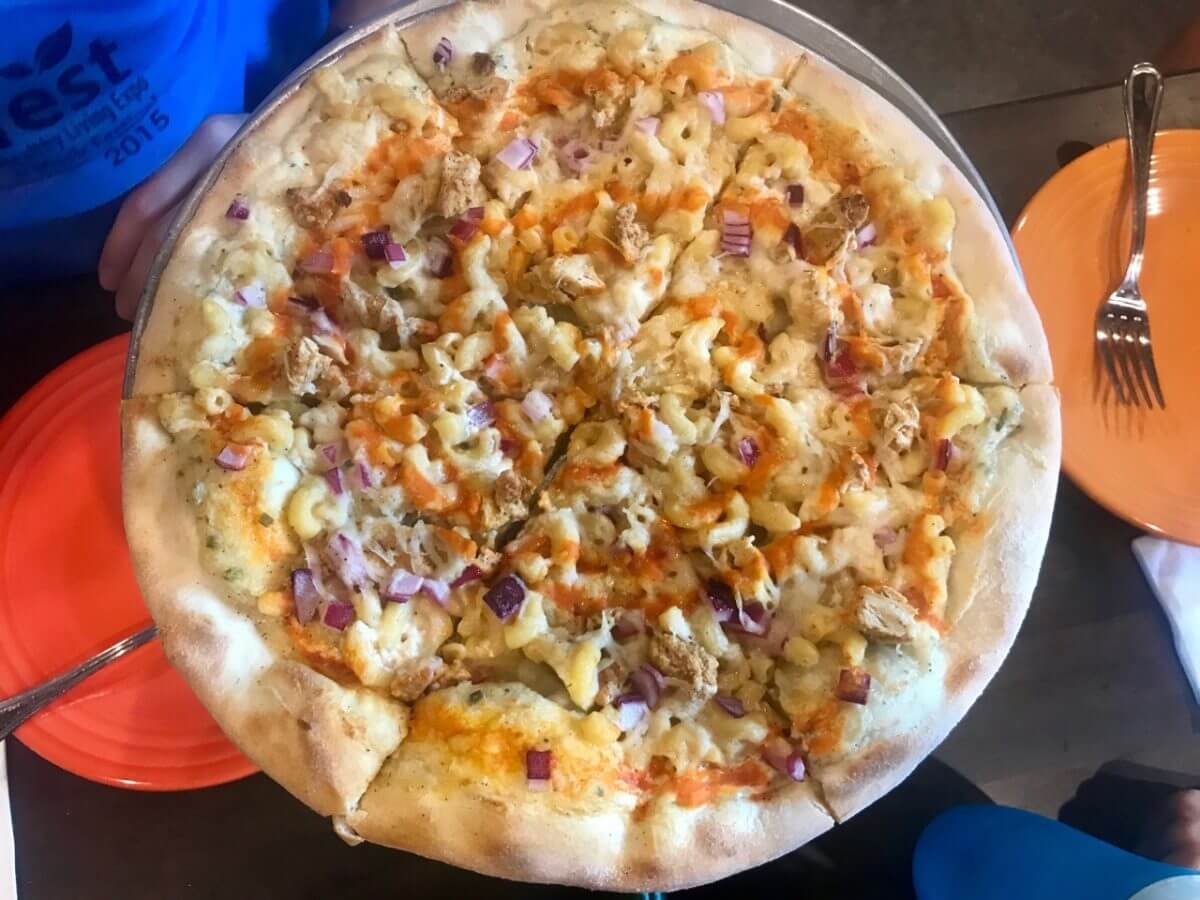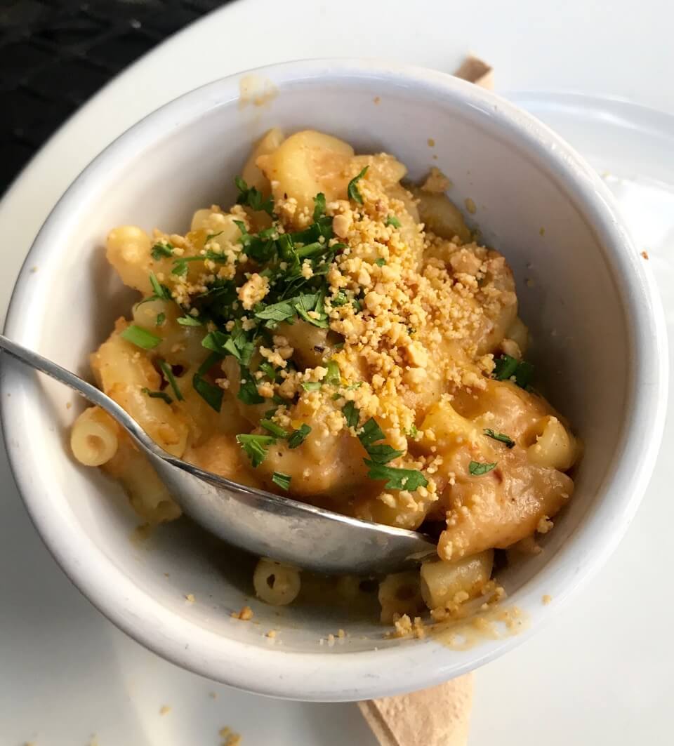Such a treat to eat at Allie’s Vegan Pizza at the end of our whirlwind day of sightseeing. The entire menu is 100% plant-based, including an array of great flavors, like this Hot Mess vegan pizza which has mac & cheese, onions, and spicy sauce.