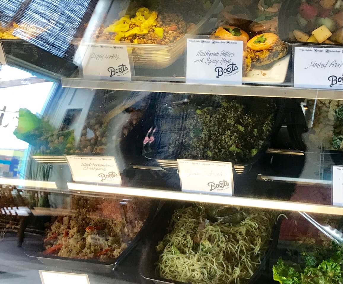 Here’s the deli case, filled with vegan salads and dishes. You can order them ala carte or as a trio, picking out three you like. So flavorful and delicious!