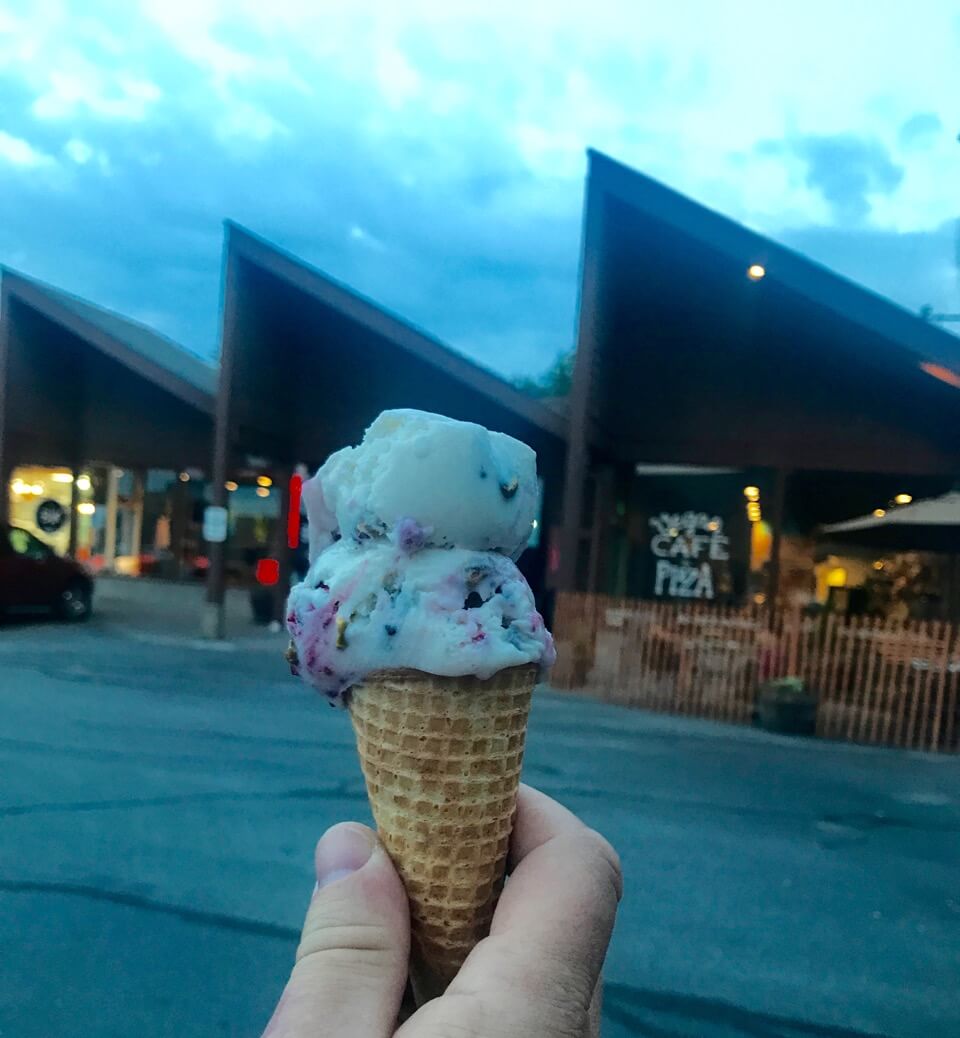 We tried this local ice cream shop, which had 4 vegan, plant-based flavors on the menu. The raspberry, pistachio, chocolate cup was ridiculous. In fact, Peter (who came with me on this trip) went back and got it two more times over the course of a two day trip!
