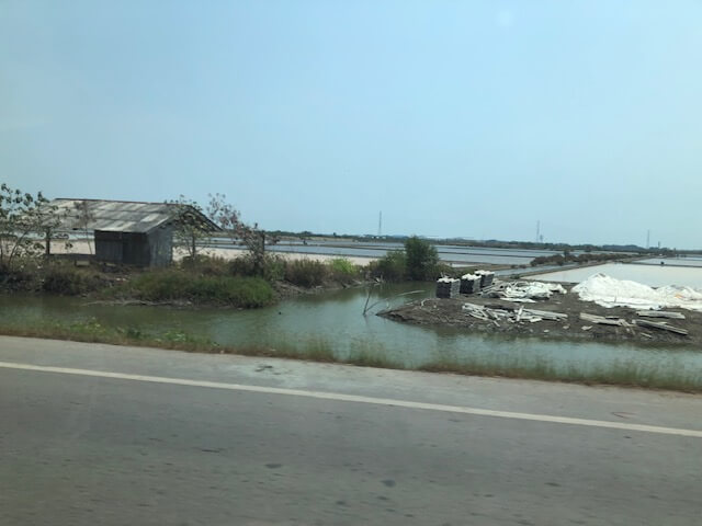 On our way back into the city we saw the salt beds where they make sea salt—these line the road.
