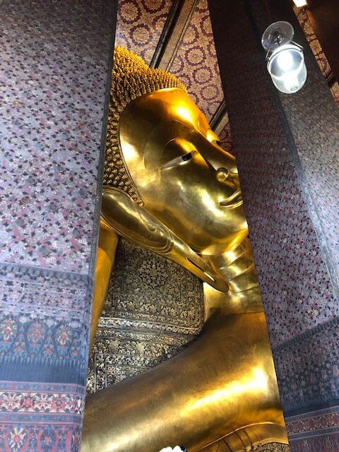 To spy the awesome and enormous golden reclining Buddha was an impressive sight. It is 15 meters high and 43 meters long, and covered with gold leaf. This is located near the Grand Palace, Wat Pho.