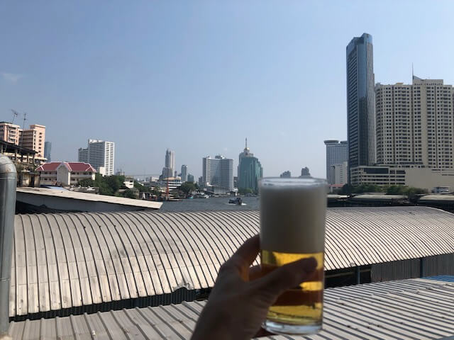 We just asked our tuk-tuk driver to take us to a good vegetarian (which is basically vegan) restaurant in the city, and he took us to this lovely spot along the river, where we quenched our thirst with local beer and spring rolls!