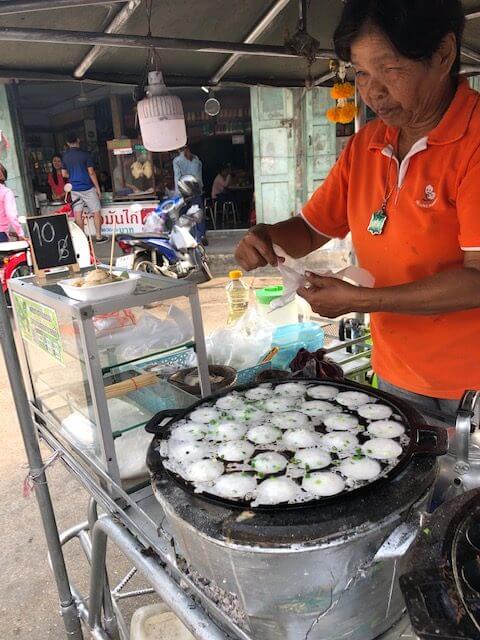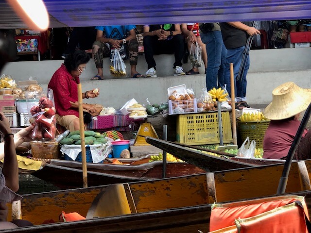 It was a treat to go on a floating market ride near Bangkok, where we purchased food from vendors on boats.