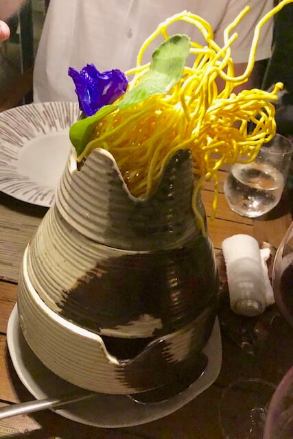 We enjoyed a wonderful dinner at the cool, trendy Namsaah Bottling Trust, which is housed in an old house painted bright pink. There were lots of great things for my to try on the menu, including this tofu curry pot with vegetables. So savory and good! While it’s not pictured here, my other dish was a banana flower salad! It includes the raw, immature banana flour in a similar style as green papaya salad.