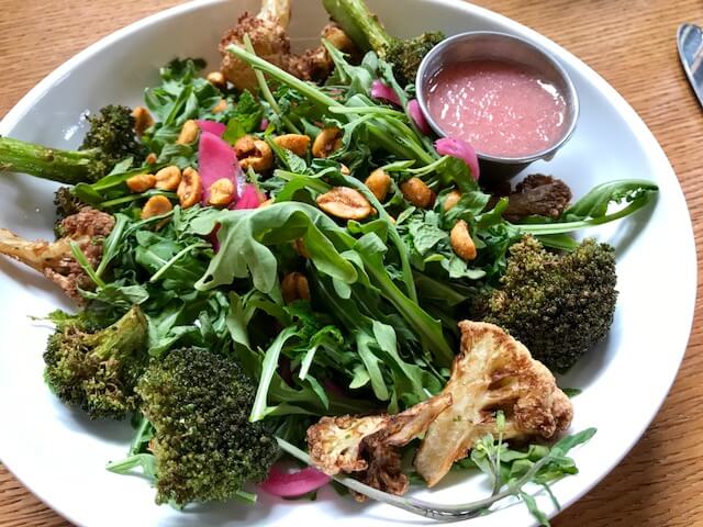 We ate at this little hot spot in Denver, which had a delicious broccoli cauliflower salad. Don’t let the name of the restaurant fool you, there were tons of plant-based options on the menu.