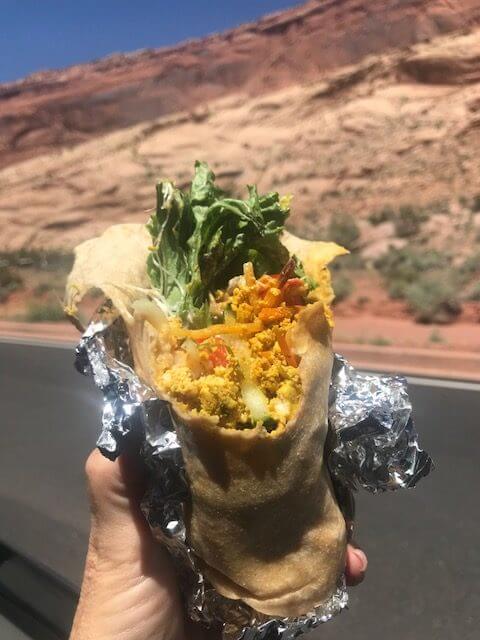 We enjoyed a delicious meal at this vegetarian restaurant in Moab—this wrap with tofu was divine!