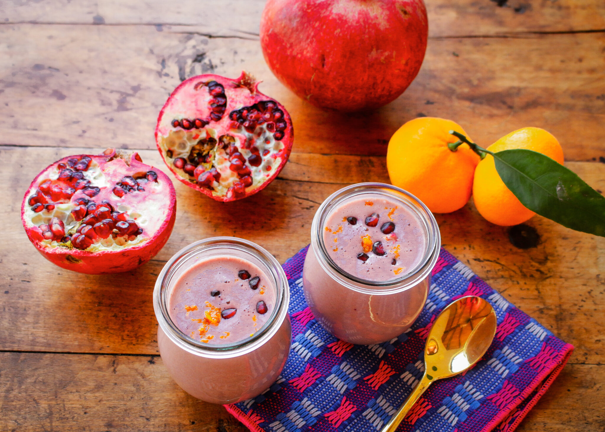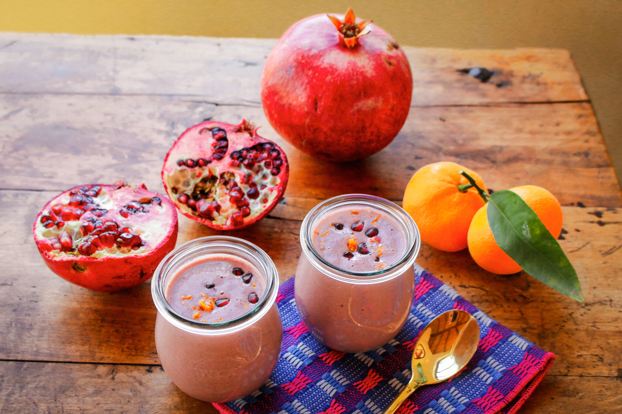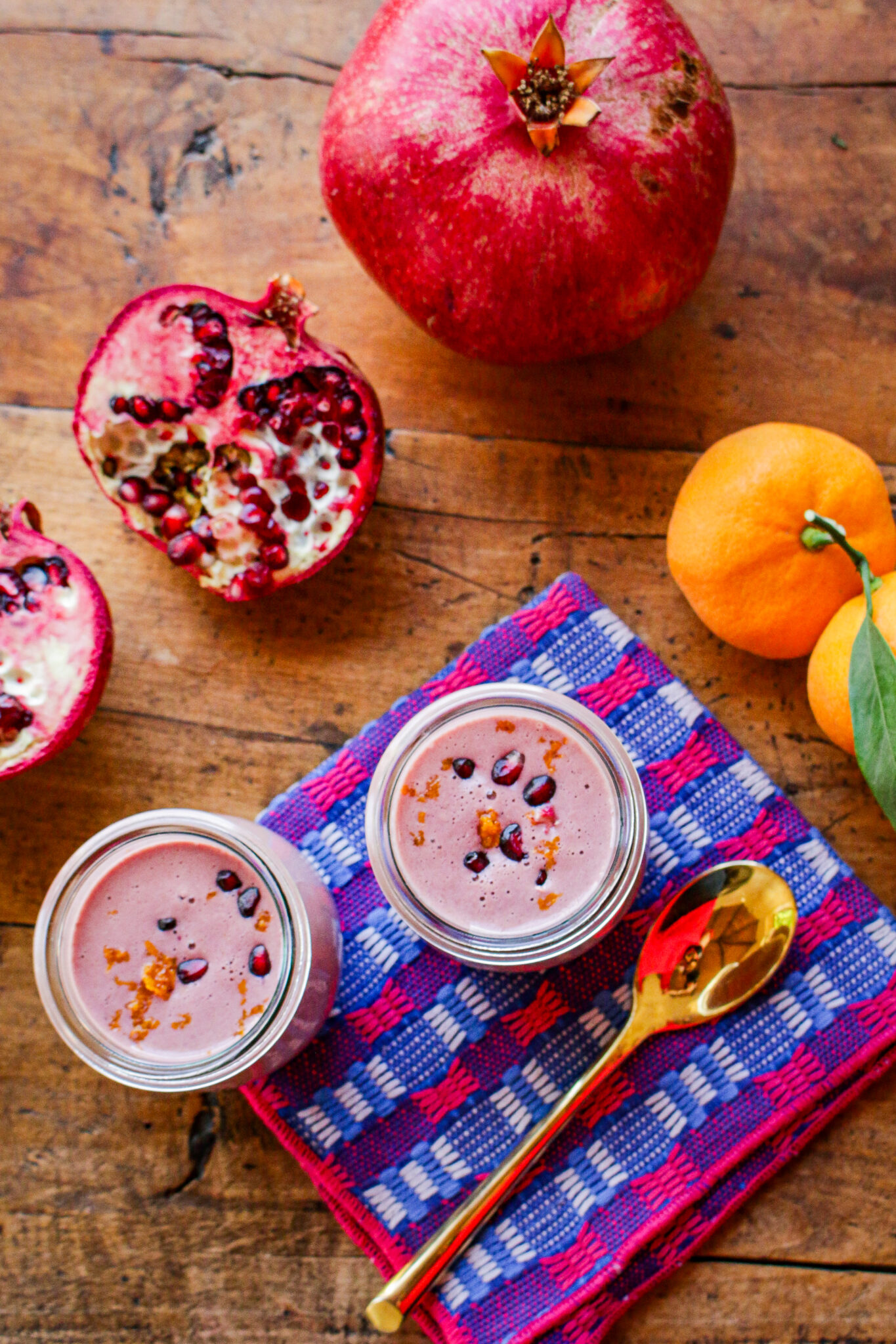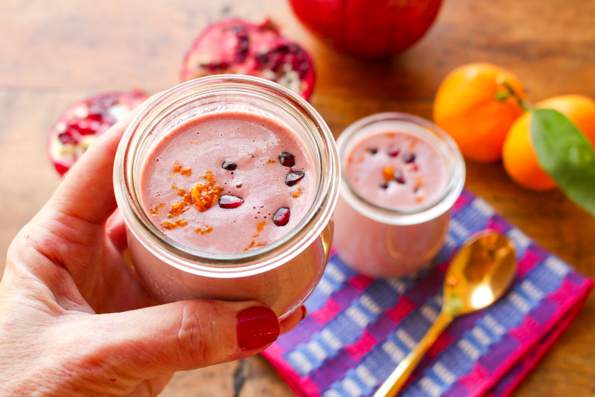 This winter Mandarin Pomegranate Smoothie powers up the superfood ingredients pomegranates, mandarins and tahini into a 5-minute, 5-ingredient, nutritious vegan, gluten-free pick-me-up.