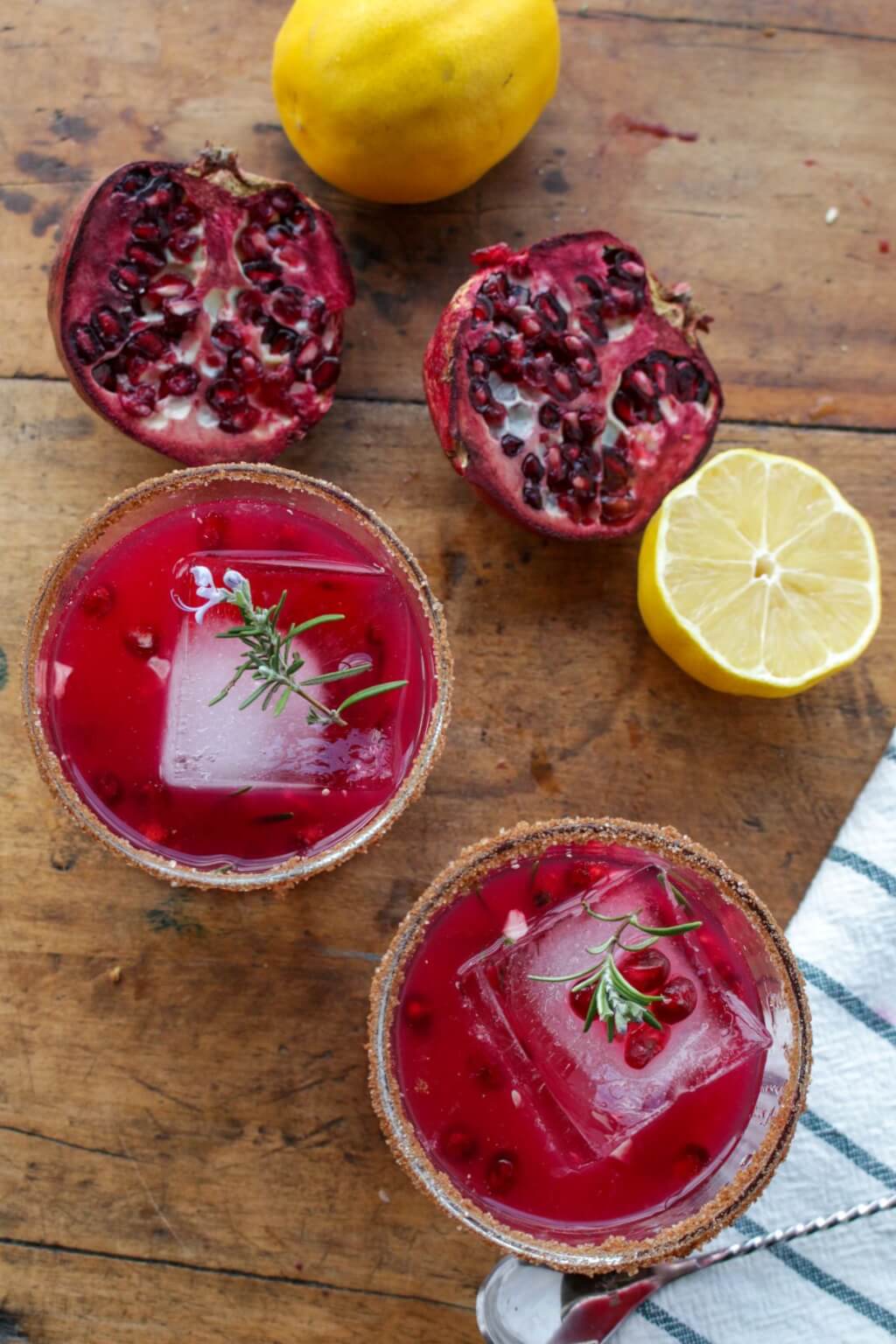 This recipe for fruit-forward, 5-ingredient, 10-minute, low-sugar Pomegranate Rosemary Margarita sparkles with bright flavors, and is based on seasonal produce, such as pomegranates and citrus.