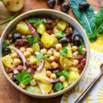 This easy potato bean olive salad is packed with beans, sun-dried tomatoes, capers, herbs, and olive oil. Healthy, hearty, vegan, and full of Mediterranean flavor!