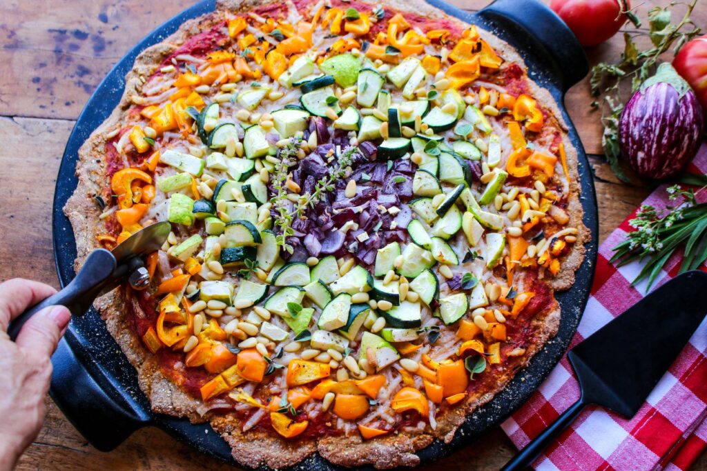 - Place in the oven and bake for 20-25 minutes, until crust is cooked through and vegetables are crisp-tender.