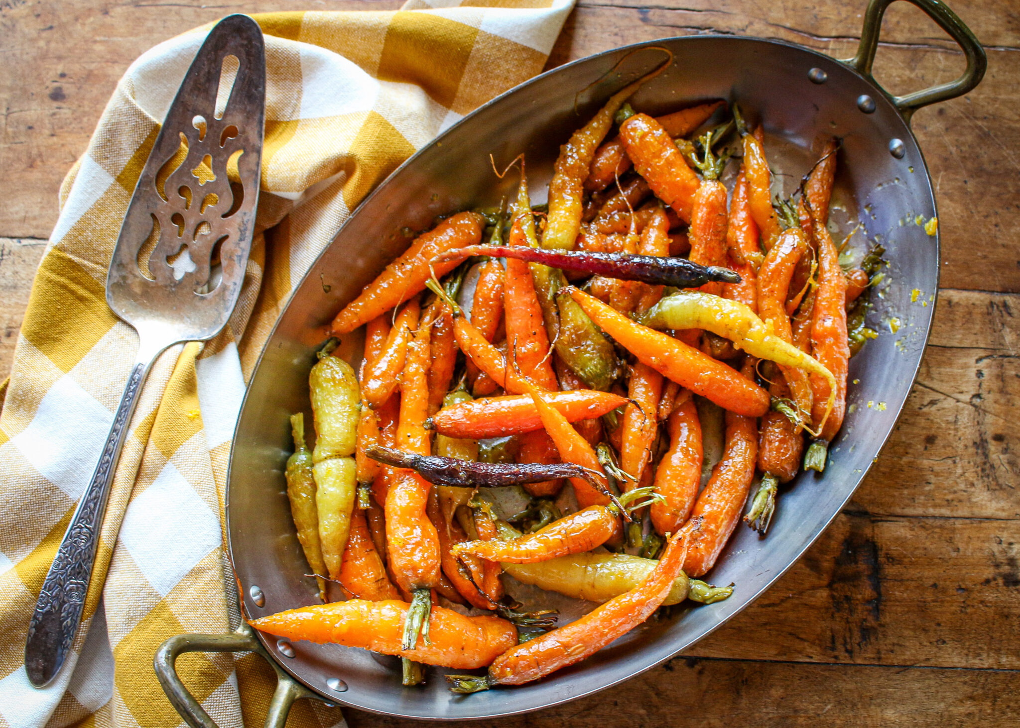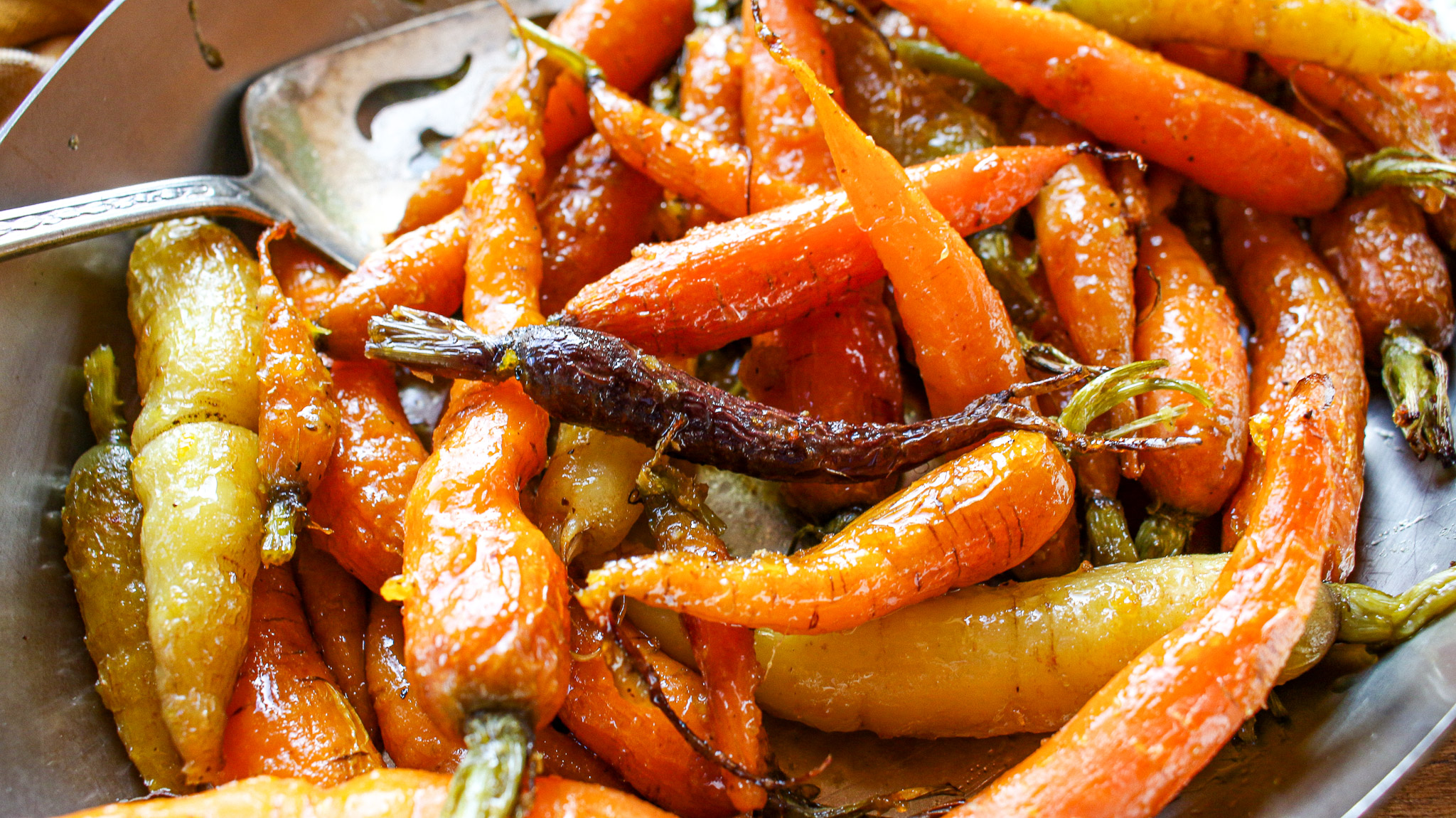 - 1 1/2 pound small whole fresh carrots, with tops (may use heirloom, multi-colored carrots or orange carrots)