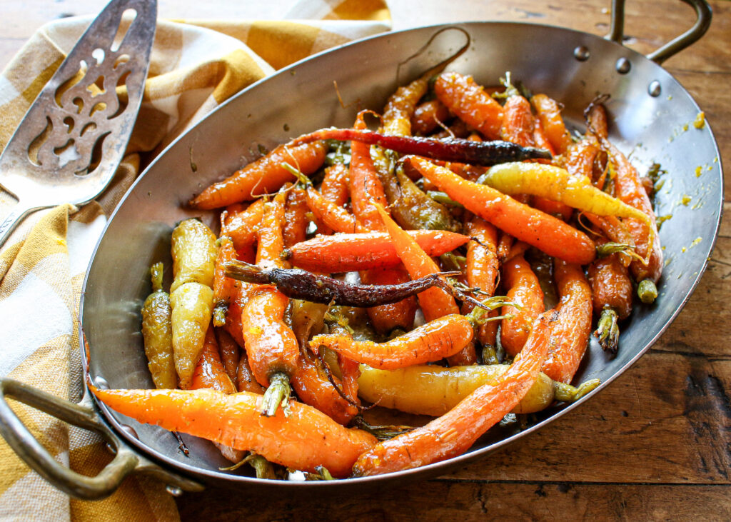 These roasted orange glazed carrots are naturally sweetened with fresh orange juice, ginger, and orange zest. A light, healthy vegan side dish perfect for holiday meals, Sunday dinners, and everyday cooking.