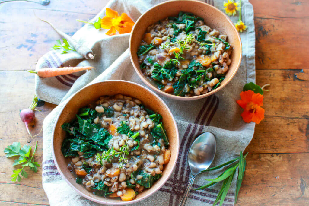 This is a good question. A lot of times I get ideas for quantities from standard basic recipes. For example, if you are making mashed potatoes, looking up the ratio of potatoes to liquid can be helpful. But then the other thing you can do is taste and experiment and add more if needed. That’s easy with plant-based cooking, because you can generally taste a lot of things raw, except grains and beans. A lot of times when I’m working with spices and herbs, I add those at the end so I can experiment and start with a smaller amount, then build up, tracking how much I add to get desired result. I keep a journal of what I’m doing to the recipe. Sometimes it takes a few times to get it right.