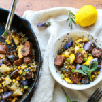 This easy, one-pan Rustic Vegan Corn Potato Sausage Skillet is packed with flavor and texture. A hearty, plant-based meal with smoky vegan sausage, crispy potatoes, and sweet corn—perfect for busy weeknights or meal prep!