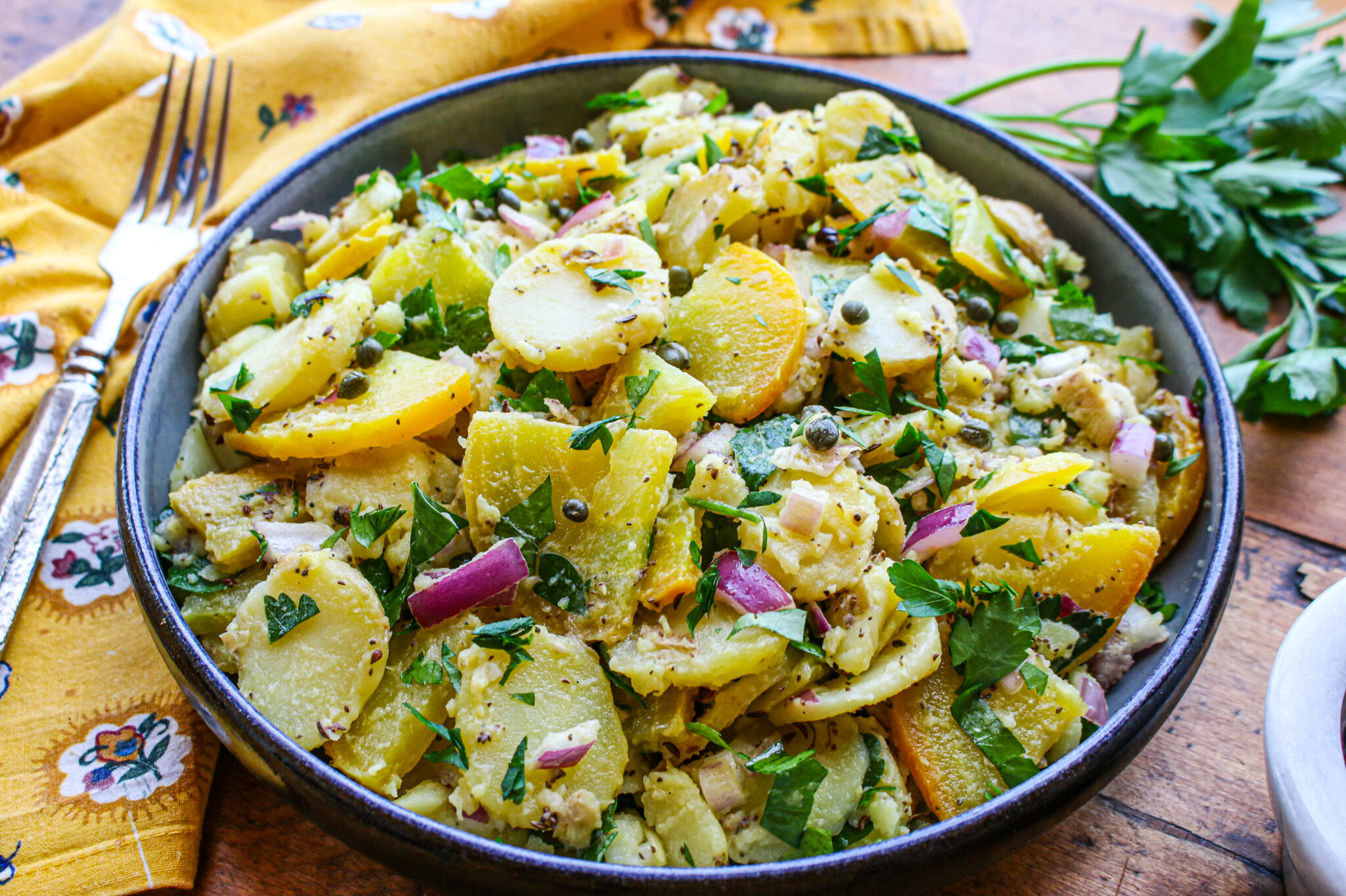 Discover a light, healthy Scandinavian beet and potato salad with caraway, juniper, capers, and a red wine vinaigrette. Easy, flavorful, and perfect year-round!