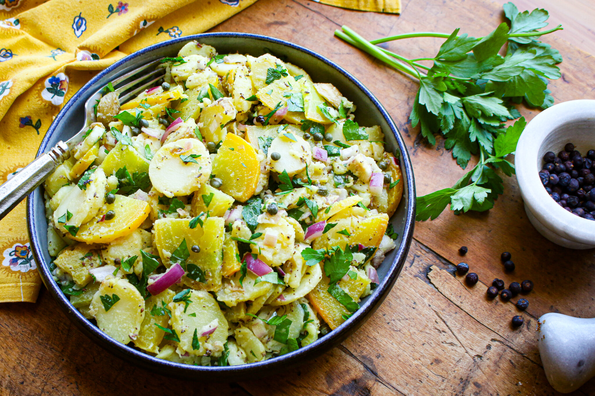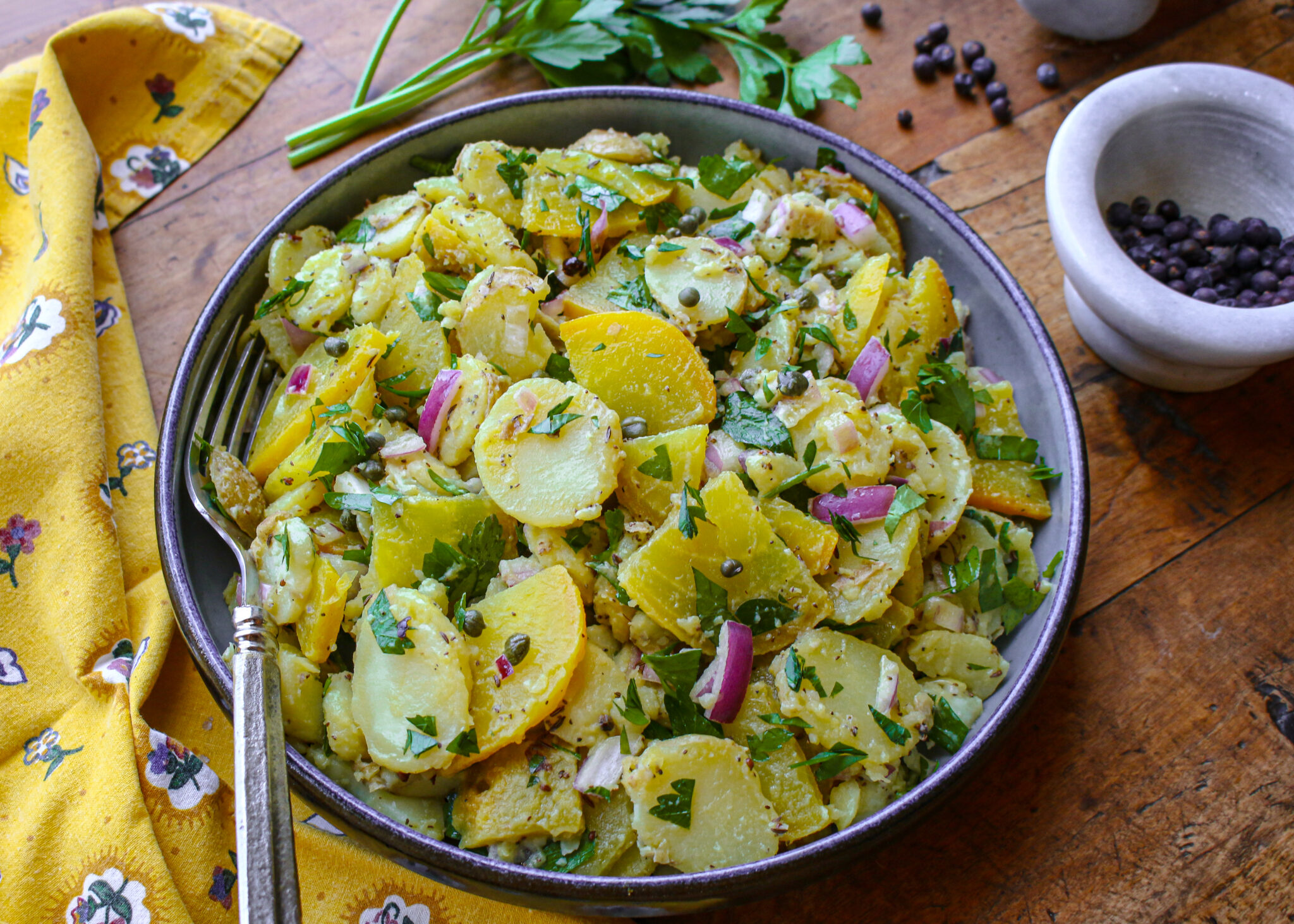 - 3 pounds small, thin-skinned yellow potatoes (i.e., Yukon gold), unpeeled
