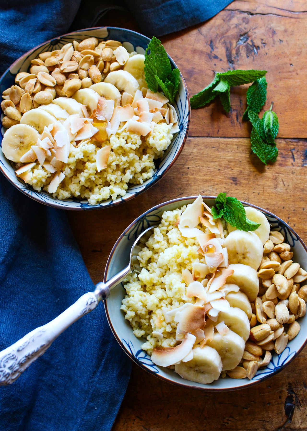 A cup of cooked millet contains 12% of the Daily Value each of satiating protein and the B vitamins thiamin and niacin, which support metabolism. Millet is also rich in polyphenols, powerful health-promoting plant compounds. Is millet gluten-free? Yes, this grain is completely gluten-free, so it’s a perfect option for everyone at your table. Combined with the peanuts, coconut, and bananas in this grain bowl recipe, you’ll get a good dose of protein, healthy fats, vitamin E, slow-digesting carbs, fiber, potassium, and phytonutrients that act as antioxidant and anti-inflammatory compounds.