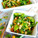 This vegan, gluten-free Thai-inspired Snow Pea Carrot Salad with Mint Green Tea Vinaigrette is easy as 1, 2, 3—and it’s oh-so-special thanks to this flavorful vinaigrette made with green mint tea, ginger, and sesame oil, and a crunchy salad mix of snow peas, shredded carrots, greens, and peanuts.