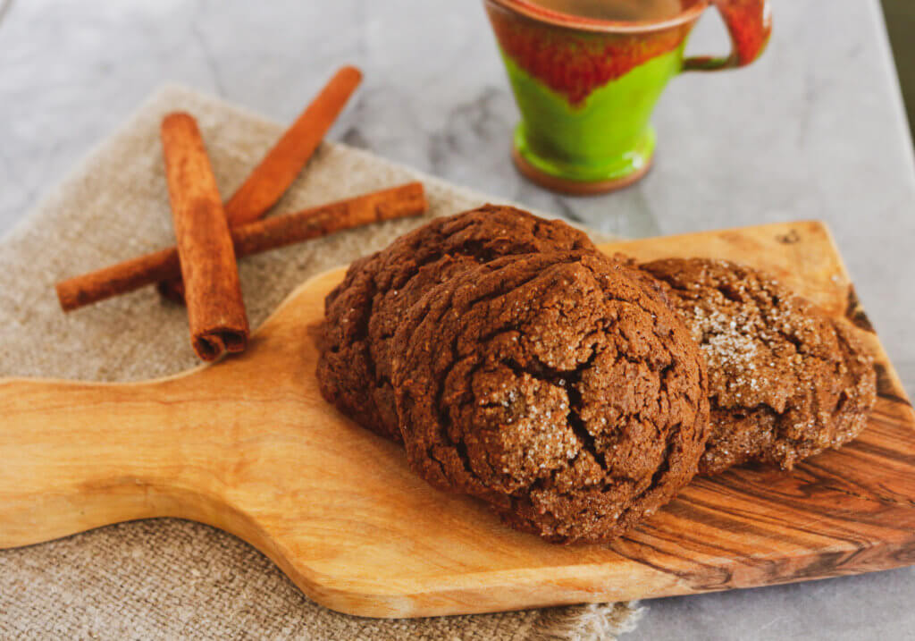 These soft molasses cookies are made with aquafaba, nutrient-rich almond meal, and the sweet aromatic appeal of baking spices.
