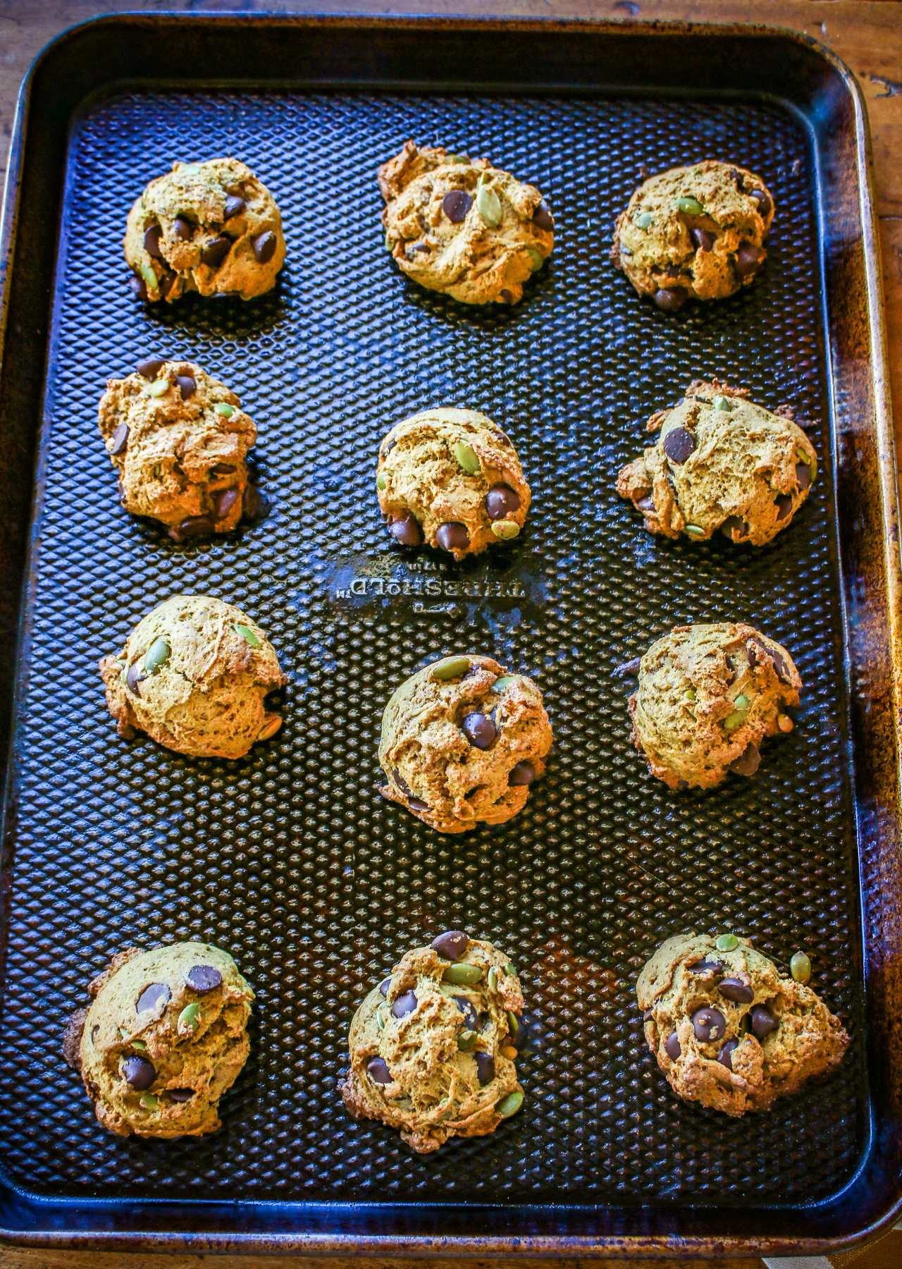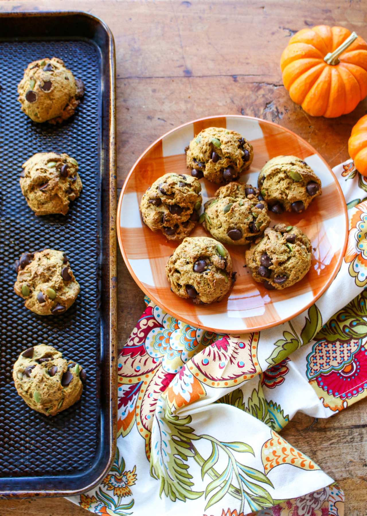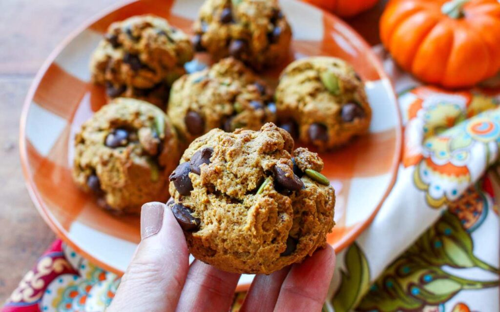 These cake-like Soft Vegan Pumpkin Chocolate Chip Cookies with Pumpkin Seeds are light, healthy, and delicious!