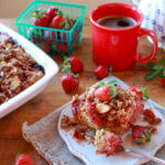 Strawberries offer natural sweetness and flavor to this simple, delicious vegan coffee cake, which is light in sugar and fat, and packed with whole grain goodness. You can make this Coconut Almond Strawberry Coffee Cake gluten-free with a couple of easy swaps.