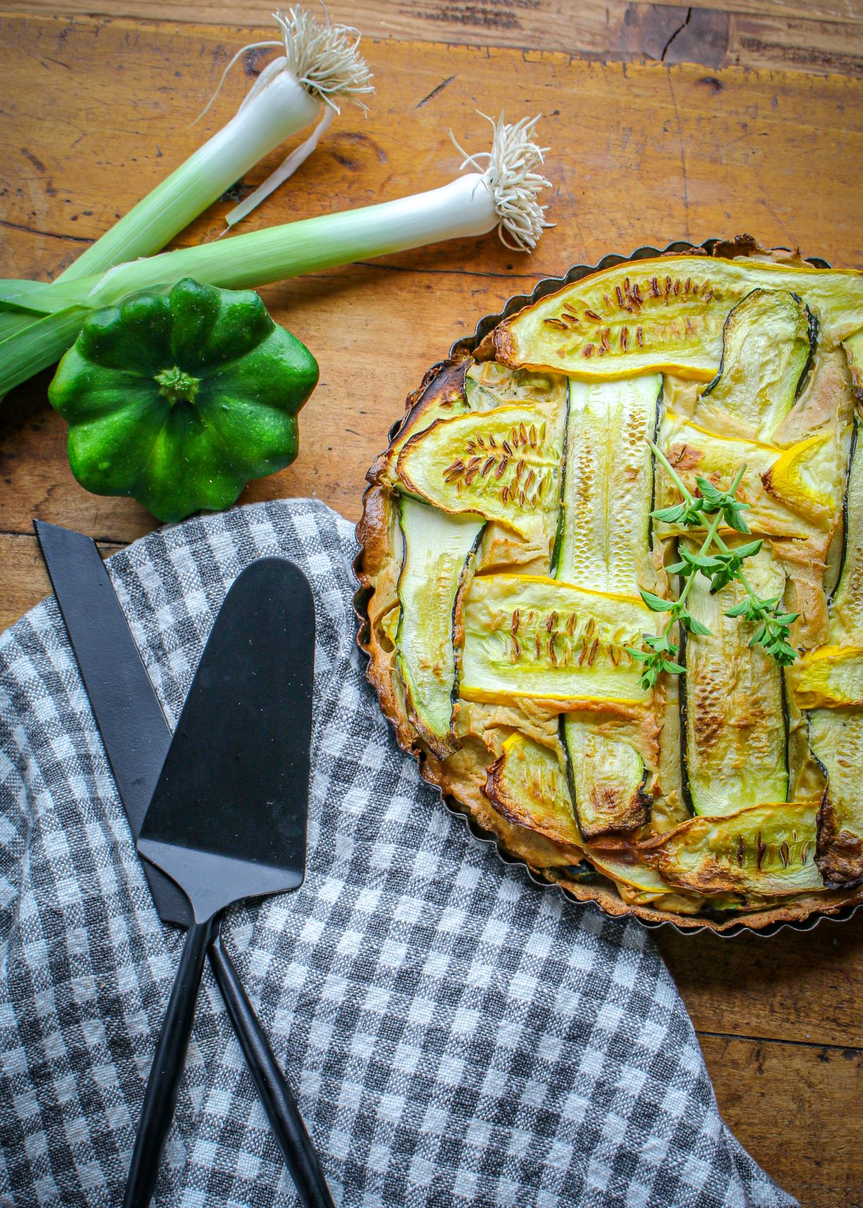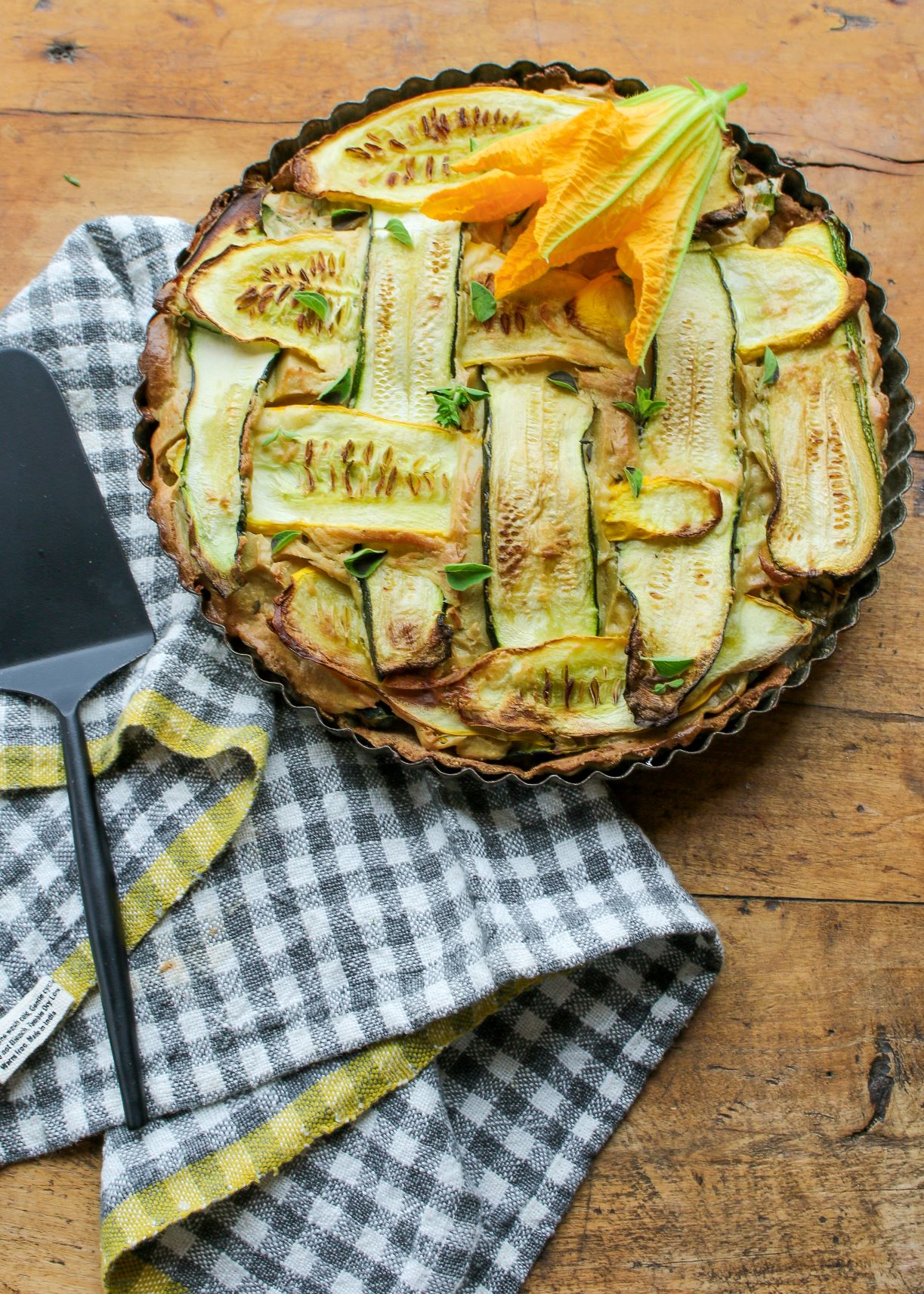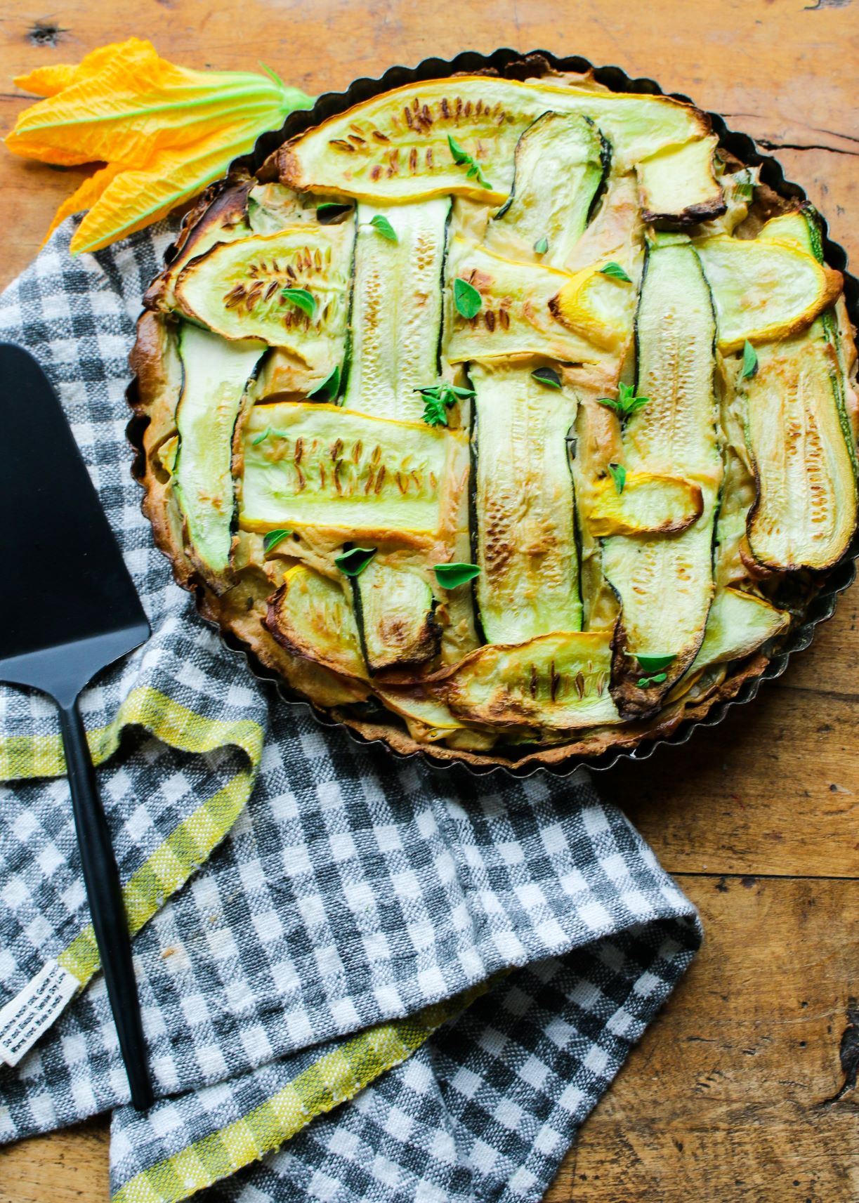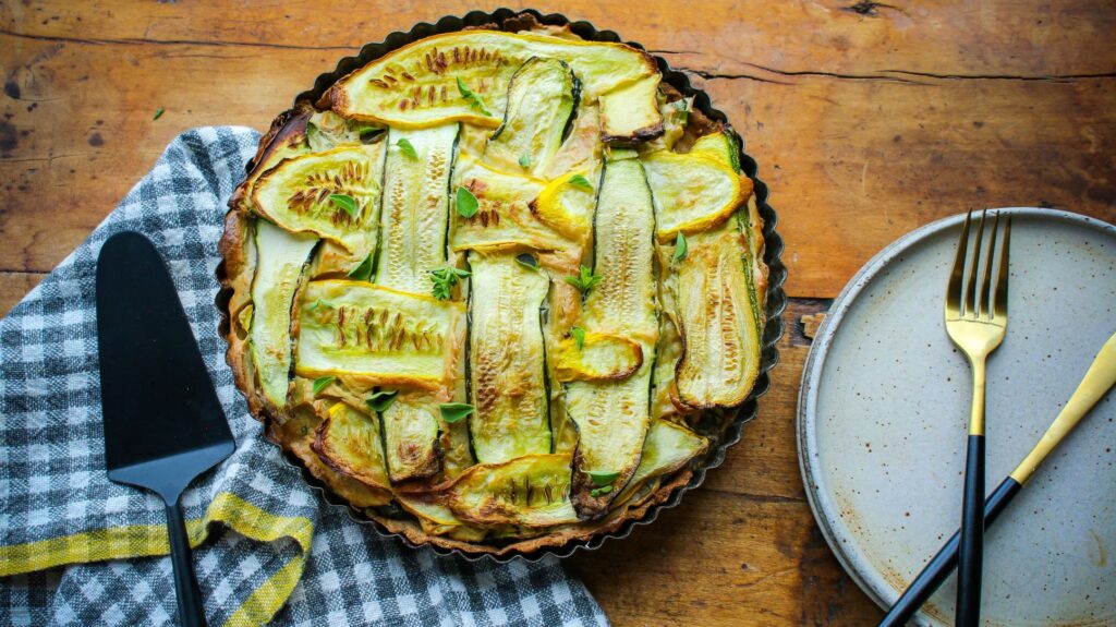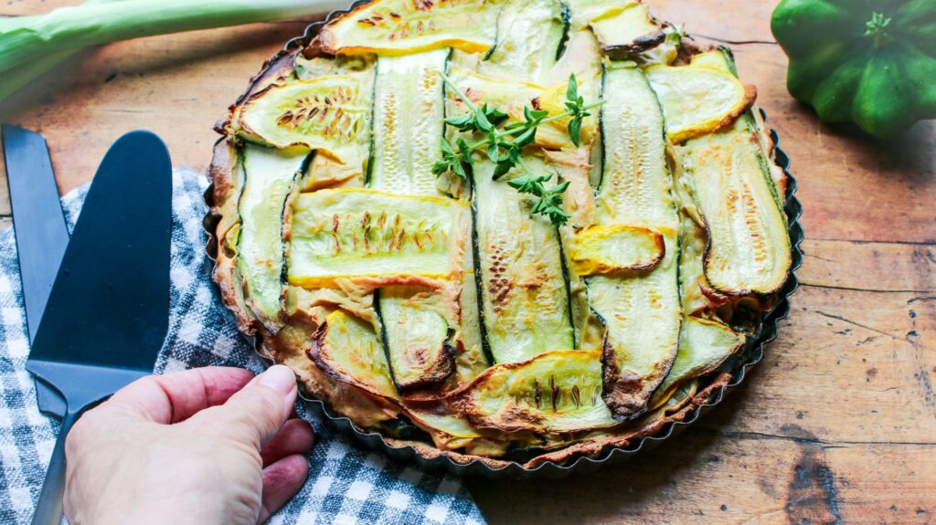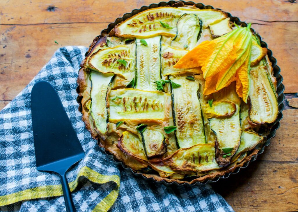 - Place the tart on the top rack of the oven and bake for 45-50 minutes, until summer squash is golden on the top.