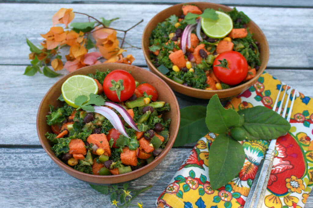 This Sweet Potato Corn Salad pairs unique colorful plant foods that are traditional in the Native American diet to create a star-turning, hearty salad.