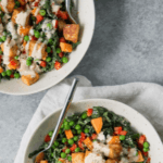 […] 29. Tofu Kale Power Bowl with Tahini Dressing (Vegan) by Sharon Palmer […]