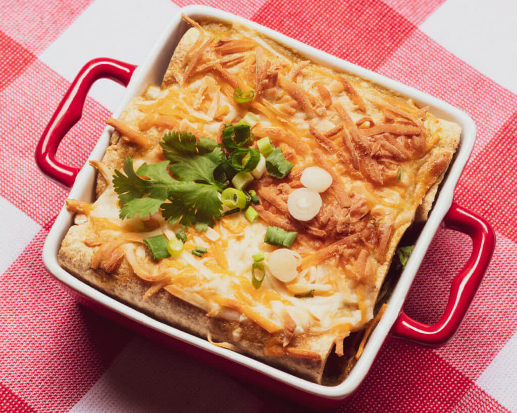 Honor local food traditions with a global recipe, such as this vegan enchilada recipe, which is filled with black beans, spinach, and cilantro.