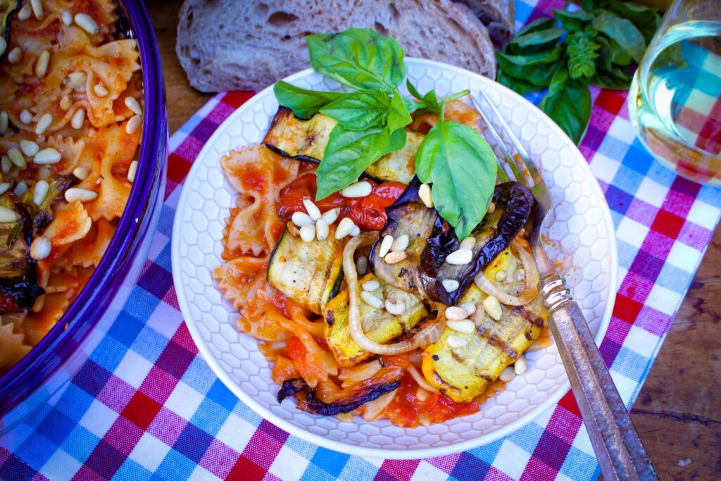 The classic Italian-inspired dish of pasta and roasted veggies celebrates seasonal produce and low-climate footprint pasta.