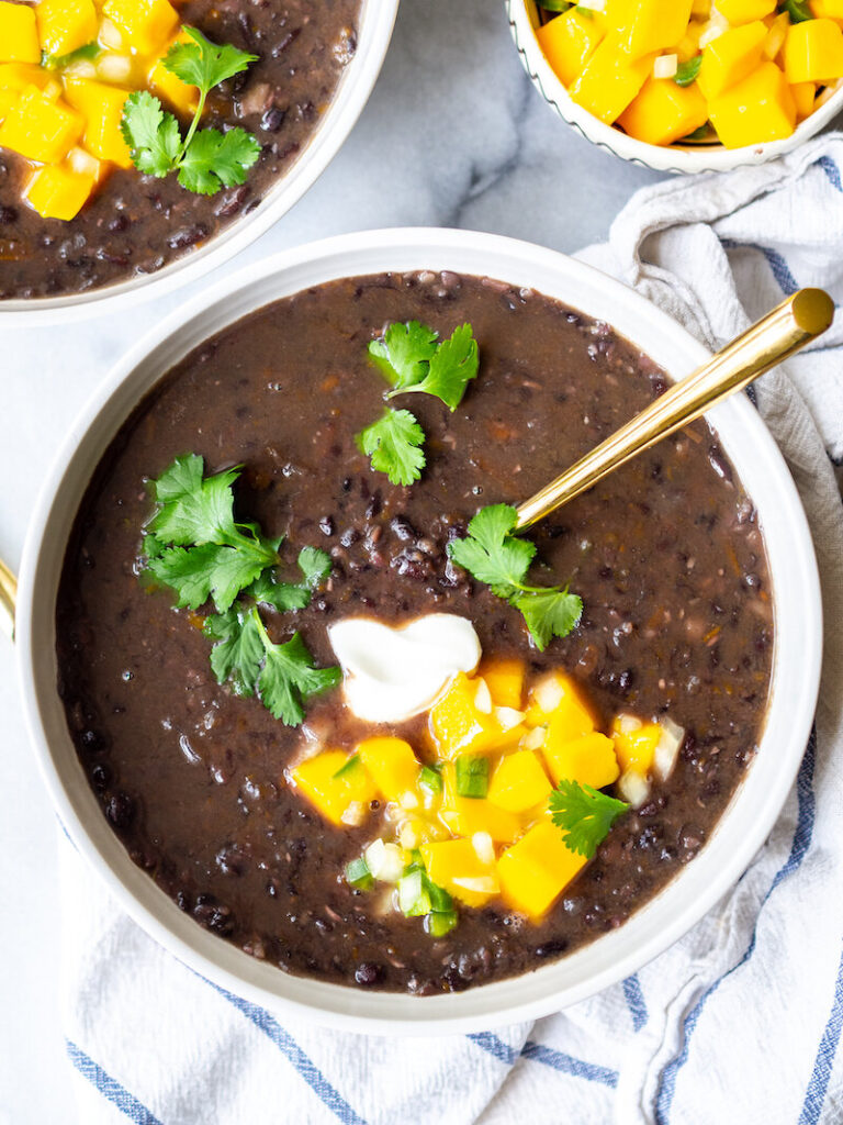 Black Bean Soup with Mango Salsa Recipe, Rachael Hartley, Rachael Hartley Nutrition (shown above)
