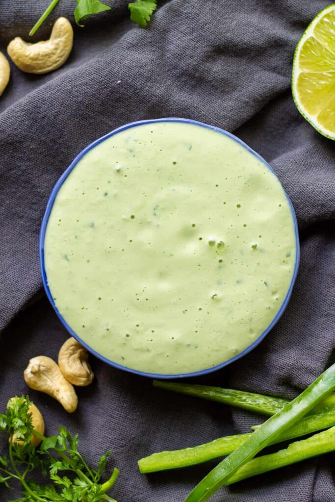 Vegan Cilantro Lime Jalapeño Crema (Chuy’s copycat), Abi Cowell, Very Veganish (shown above)