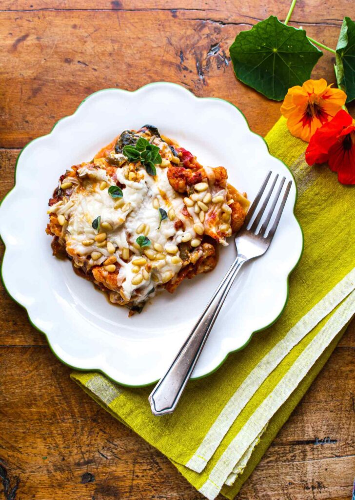 Cauliflower Spinach Lasagna, Sharon Palmer, MSFS, RDN, The Plant-Powered Dietitian (shown above)