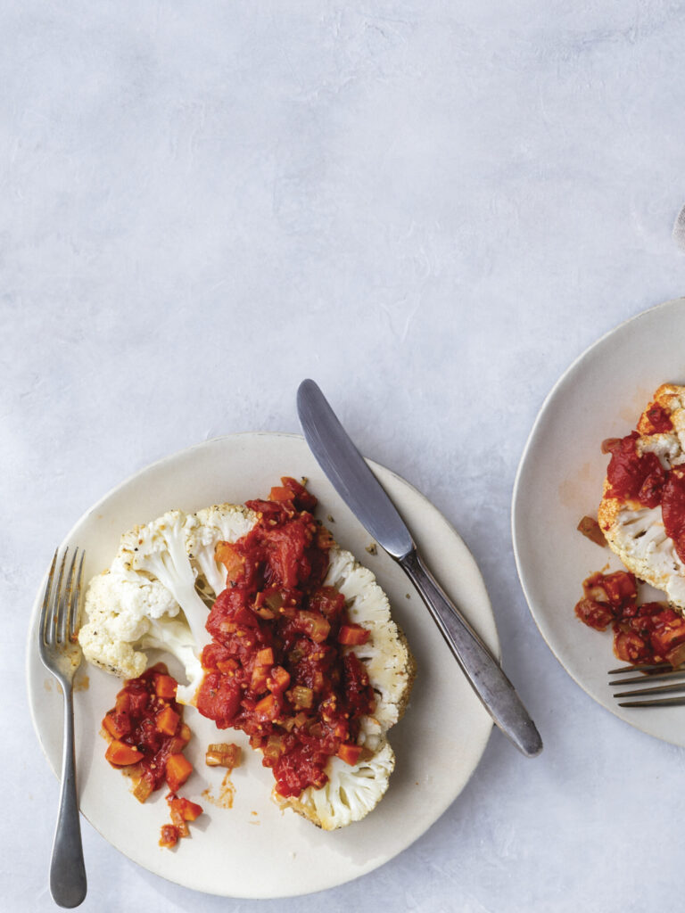 Whole Roasted Cauliflower with Tomato-Pepper Ragu, Toby Amidor, Toby Amidor Nutrition (shown above)