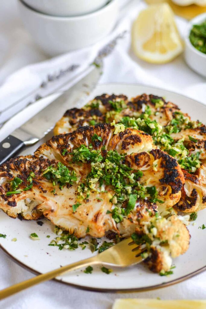 Garlic Butter Roasted Cauliflower Steaks, Megan, Earthly Provisions (shown above)
