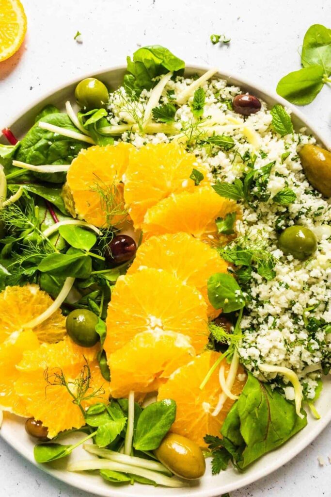 Raw Cauliflower Couscous Salad with Orange and Fennel, Juliette Young, Flourishing Kitchen (shown above)