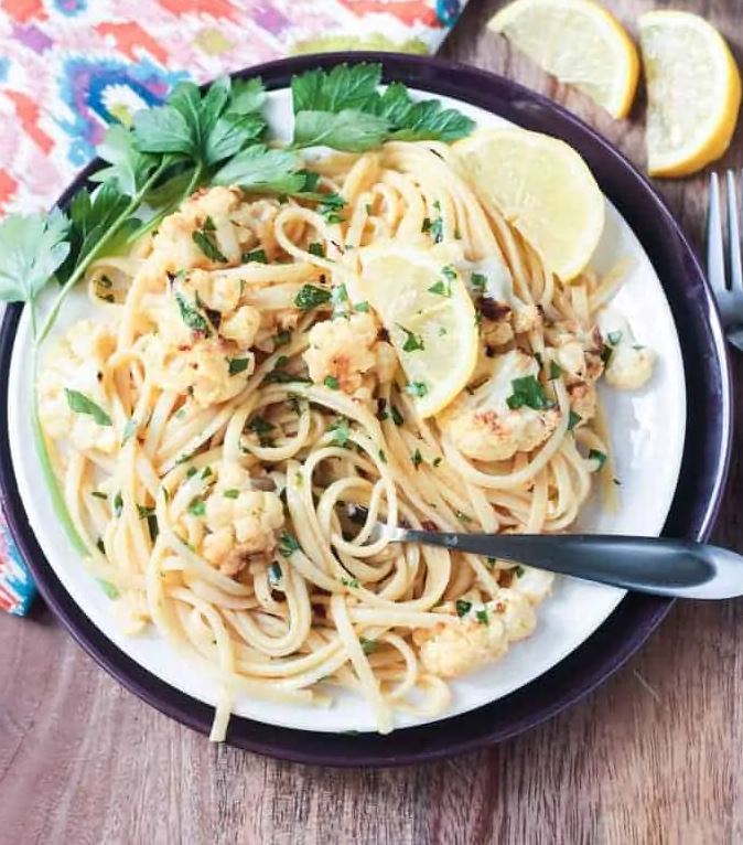 Cauliflower Scampi in Lemon Garlic White Wine Sauce, Jennifer Thurman Sebestyen, Veggie Inspired (shown above)