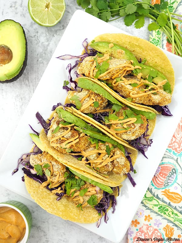 Crispy Cauliflower Tacos, Dianne Wenz, Dianne’s Vegan Kitchen (shown above)