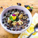 Looking for an easy healthy homemade oatmeal recipe you can rely upon every day of the year? Here you go! This yummy healthy oatmeal recipe is based on old-fashioned oats, dried fruits, nuts, seeds, and dark chocolate chips–things you can keep on hand all year long. This Healthy Trail Mix Homemade Oatmeal recipe is like taking a hike in the forest: just think about munching on those nuts, seeds, and dried fruits among a grove of aromatic pine trees while you’re digging into this vegan, gluten-free, nutritious oatmeal bowl. Make this 10-minute recipe for meal prep too: Dish up four servings of these healthy oat bowls, chill them in airtight containers, and then tote them along for grab-and-go breakfasts all week long. Kids will love this recipe, too!