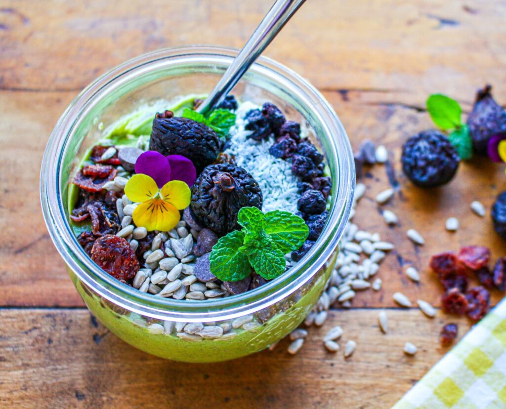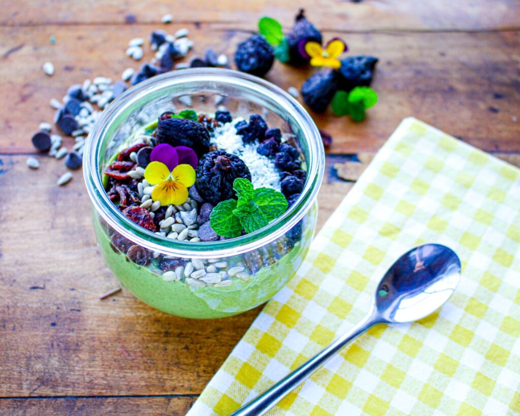 These easy 8-minute vegan, gluten-free Trail Mix Smoothie Bowls take advantage of the power of a green smoothie, plus dried fruits, nuts, and seeds to provide a kick of delicious flavor and essential nutrients to your day.
