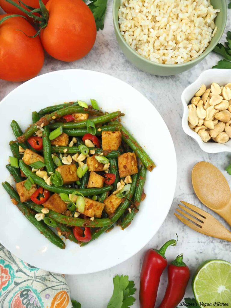 Thai Recipe: Thai Inspired Red Curry Green Beans, Dianne Wenz, Dianne’s Vegan Kitchen (shown above)