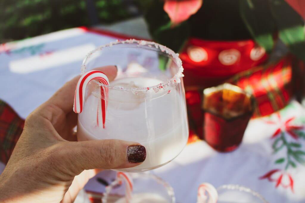 This cocktail recipe makes one batch, but you can easily make a pitcher of it for a party to save time. I love the crushed candy cane rim on the glasses, which actually tastes good when you sip the drinks, too. It’s also a fun way to use up your leftover candy canes. And it even gives you fresh breath! All that from a fun cocktail.
