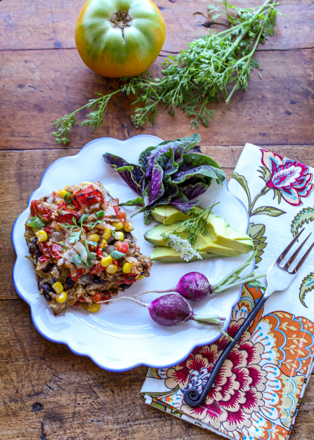 This vegan tamale pie recipe is also a great one for serving if you are new to plant-based eating. I honestly think it could satisfy any palate—from meat lovers to vegans. Once you try it, you can keep these pantry-friendly ingredients on hand quite easily in order to turn to this meal as a go-to favorite in your culinary repertoire. It’s also a really great dish to tote along to a party, picnic, or potluck. And the leftovers are great for breakfast or lunch the next day. Mix it up by personalizing it—you can add diced green peppers, jalapeño slices, sliced black olives, or chopped fresh tomatoes. Make it your own. The tamale pie recipe satisfies as a good source of protein, whole grains, and veggies all in one.