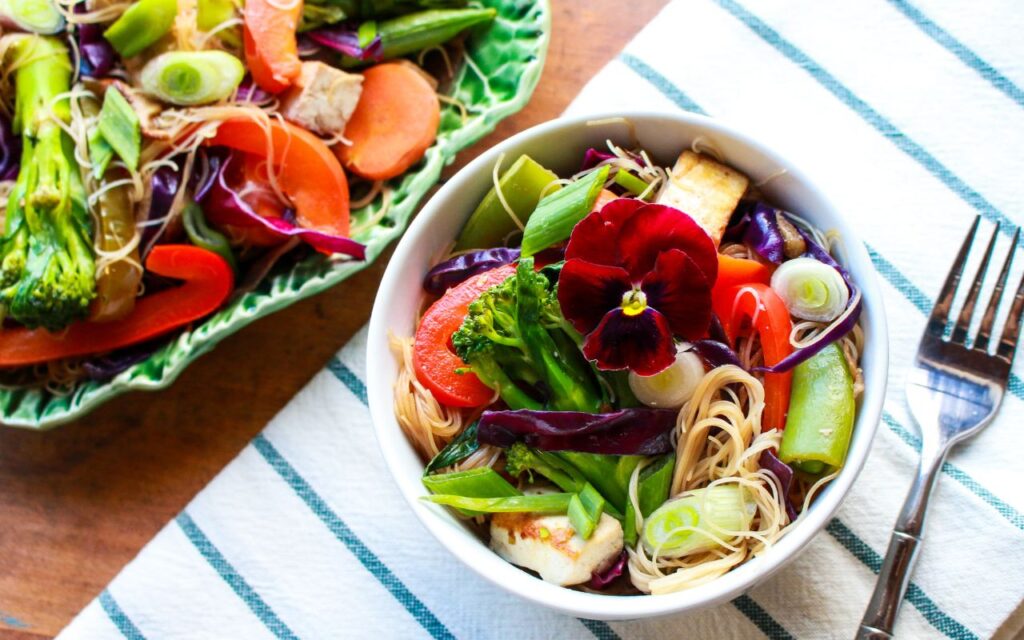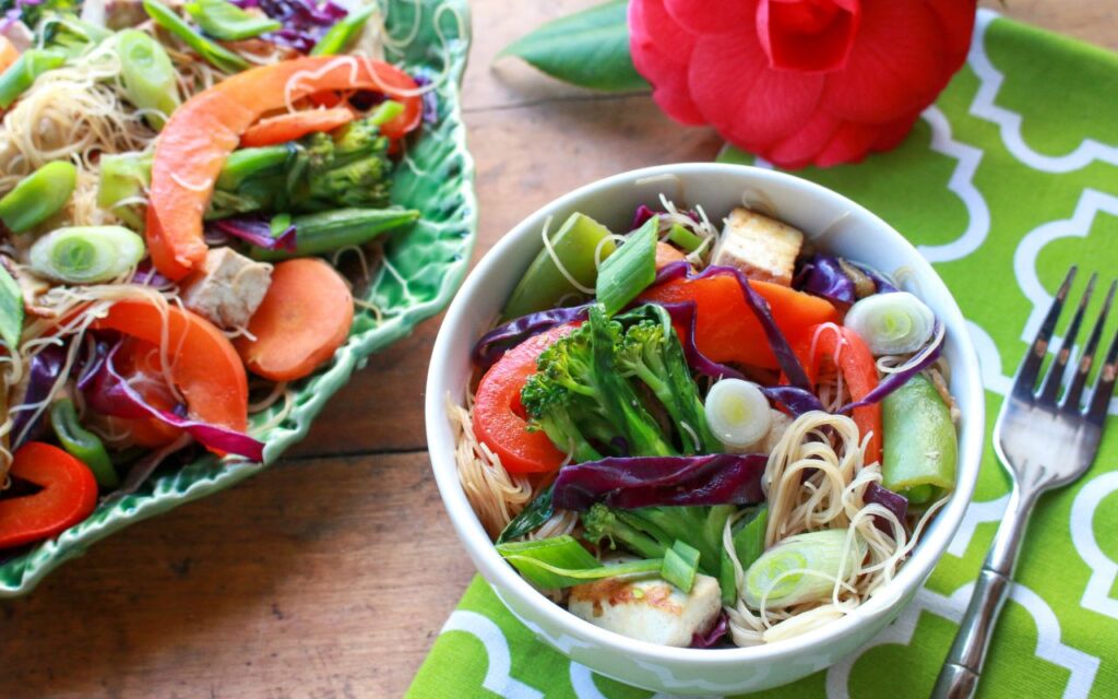 - Add mushrooms, cabbage, and tofu and sauté for an additional 3 minutes, until vegetables are crisp-tender but bright in color.