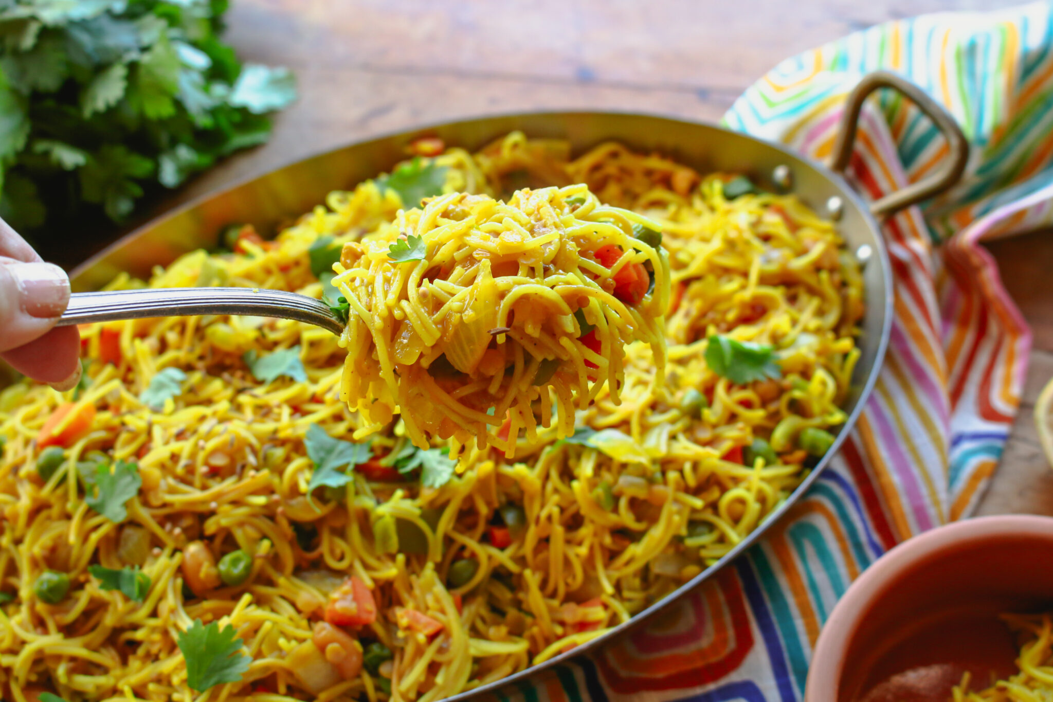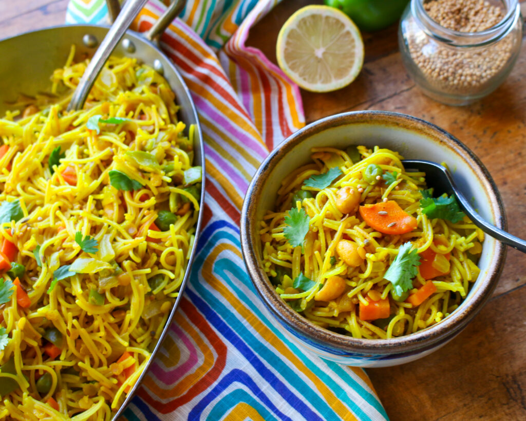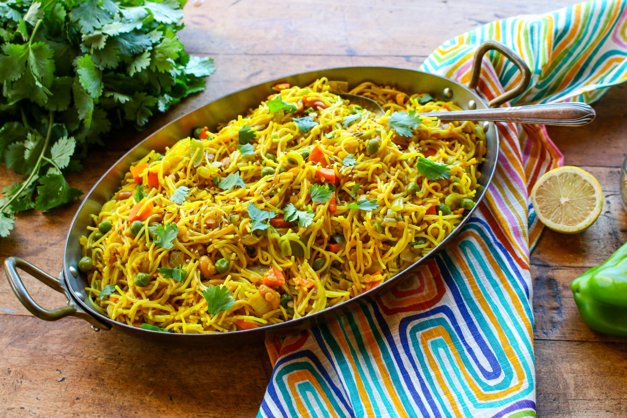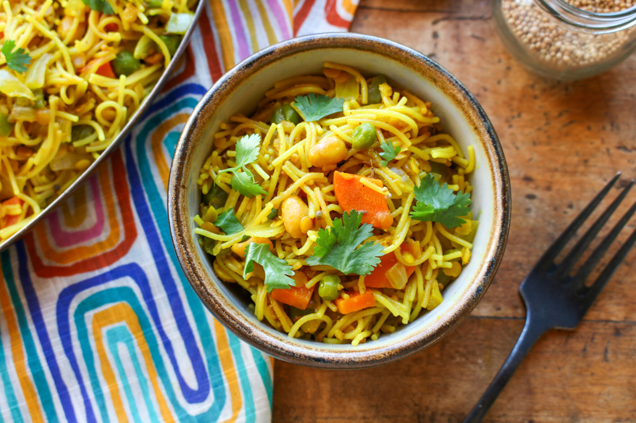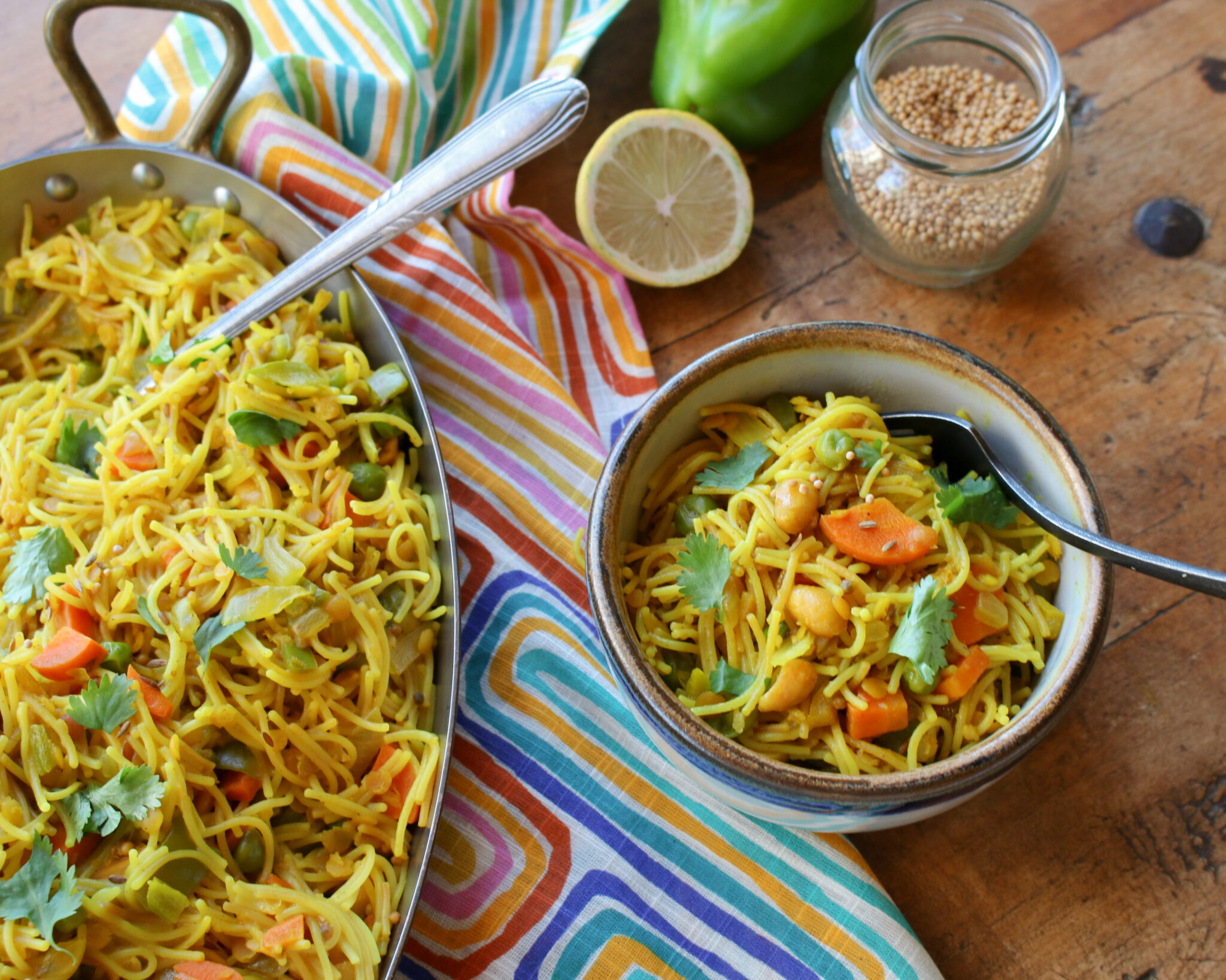 Make up a delicious, colorful, flavorful one-dish meal in 35 minutes with this recipe for Vermicelli with Vegetables and Indian Spices. Inspired by Indian foodways.