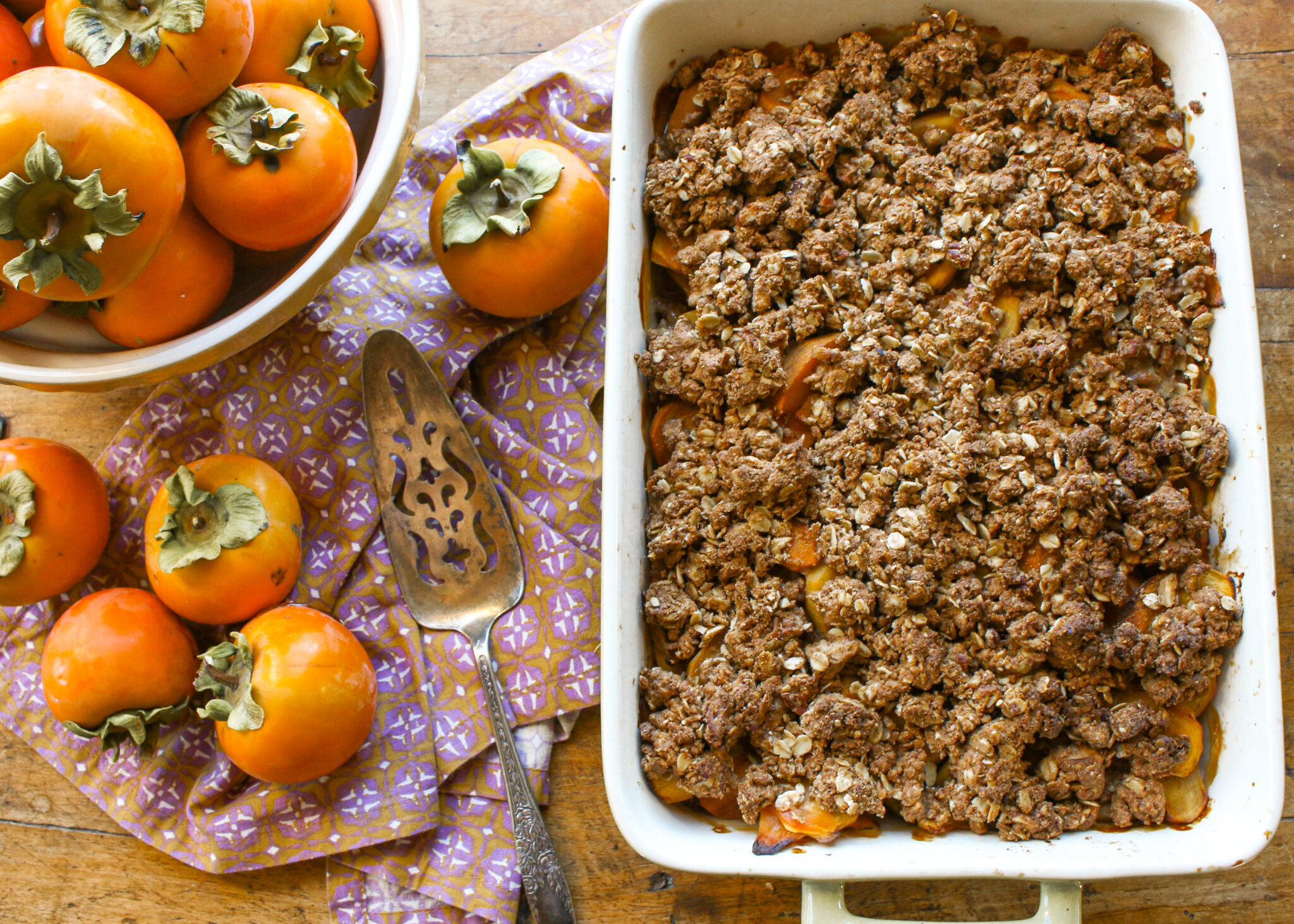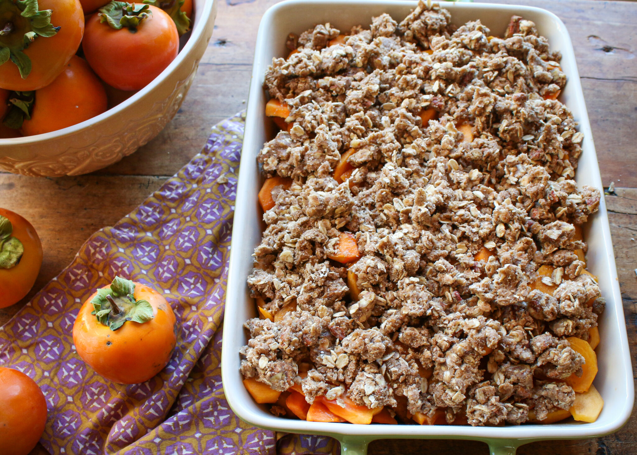 Healthy Persimmon Crumble–Easy Vegan Dessert with Oats, Pecans, and Whole Grains