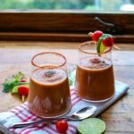 - If desired, make a sea salt paprika rim for two smoothie glasses by mixing the paprika and sea salt in a small saucer. Rub a half lemon or lime against the rim of the glass. Dip the glass in the saucer with the sea salt paprika mixture to create a crust.