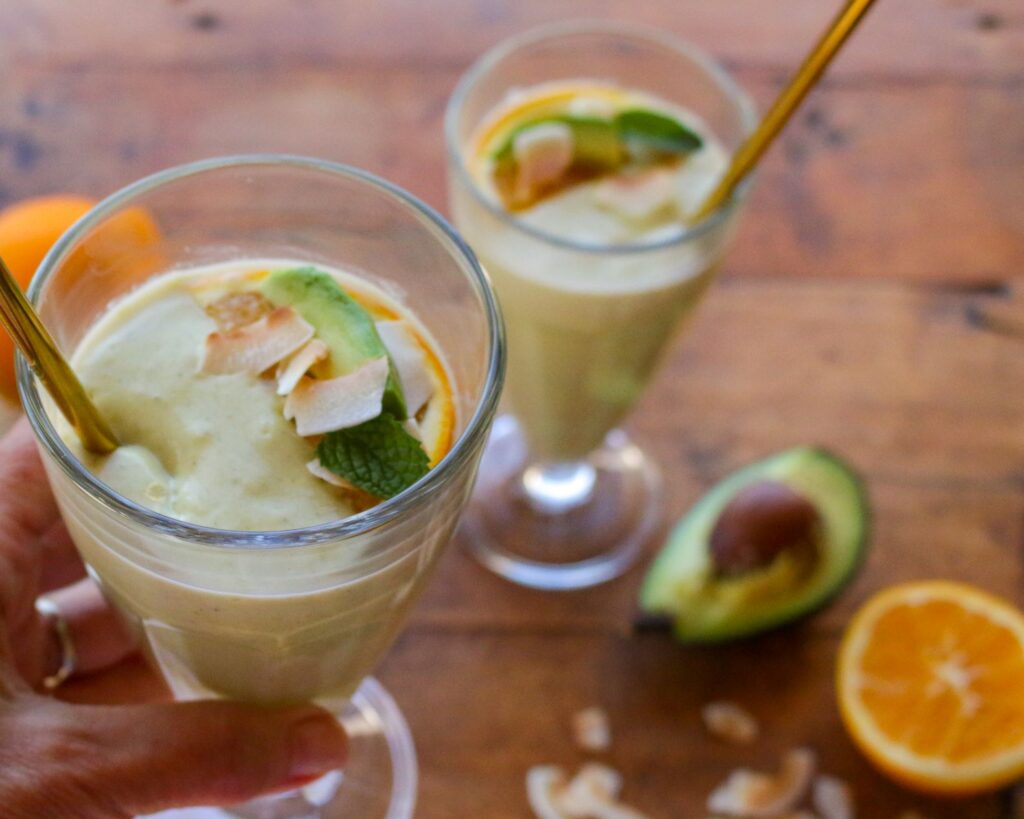 Toss bananas, avocado, orange, hemp seeds, coconut, plant-based milk, and ginger into a blender to create this super easy, delicious, 5-minute, healthy smoothie that is also added sugar-free, vegan and gluten-free.